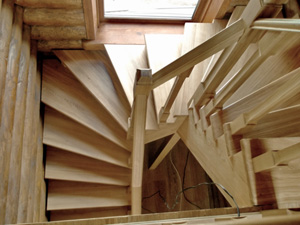 При повороте лестницы необходимо оставлять пространство между стеной, которое должно быть не менее ширины лестницы и существование пространства между нижней либо верхней ступенью. Пытайтесь расположить лестницу так, чтобы не было соприкосновения с электропроводкой, отопительными или водопроводными трубами. Если спланировать строительство лестницы правильно (отверстия в перекрытии располагаются вдоль балок), то этим упрощается работа по установке обрамляющих отверстие балок. Если же устанавливать отверстия балок поперечно, то появляется необходимость в установке шести новых балок. Строительные правила и нормы регламентируют минимальный просвет лестницы и ширину. В соответствии с этими размерами и определяются размеры отверстий в перекрытии. Лестница, ведущая в комнату, может иметь ширину 600 мм, исключение составляют лестницы, ведущие в жилые комнаты и кухню. В остальных случаях ширина лестницы 800 мм. Стандартное отверстие для лестницы должно по своей длине обеспечивать оптимальное пространство между потолком и ступенями. Согласно строительным нормам эта высота должна быть 2 метра и больше, но не следует пренебрегать тем, что увеличение высоты создаст дополнительный комфорт для передвижения высоких людей, а так же при переноске мебели. Соответственно от типа лестницы, которую вы хотите установить будут зависеть и размеры проёма в перекрытии. Данные правила устройства проёма подходят для лестниц любого типа. Не следует забывать, что после установки лестницы производится отделка, поэтому необходимо добавлять, к выбранным размерам проёма, по меньшей мере 50 мм свободного пространства, с каждой стороны. Чтобы произвести прорезку проёма, снимается часть пола, прорезаются балки, и убирается часть потолка. Произвести отделку проёма можно закрыванием выступающих продольных и поперечных балок кусками досок, а щели закрыть наличниками. Идеальный наклон лестницы - сорок пять градусов. Оптимальная ширина ступеней 280-300 мм (что соответствует сорок пятому размеру ноги). При изменении этих параметров либо затрудняется спуск, либо сбиваешься с шага, что вызывает неудобства. Регламентируемая высота ступени не выше двадцати сантиметров. Для ограждения лестницы используются столбы, поручни, балясины. При этом расстояние между центральными точками не должно быть больше 150 мм, а при толщине меньше 50 миллиметров есть смысл ставить на одну ступеньку по две балясины. Пристенный поручень делается как дополнительное ограждение в стене, если ширина лестницы больше 110см. Проектирование и расчёт лестничных элементов можно проводить несколькими способами, но в основе всегда лежит создание максимального комфорта и обеспечение безопасности передвижения по лестнице (зависит от основных размеров лестничного марша). Смотрите также: