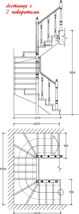 Следующая страница: Прямолинейная лестница с поворотом на 2/4 через площадки